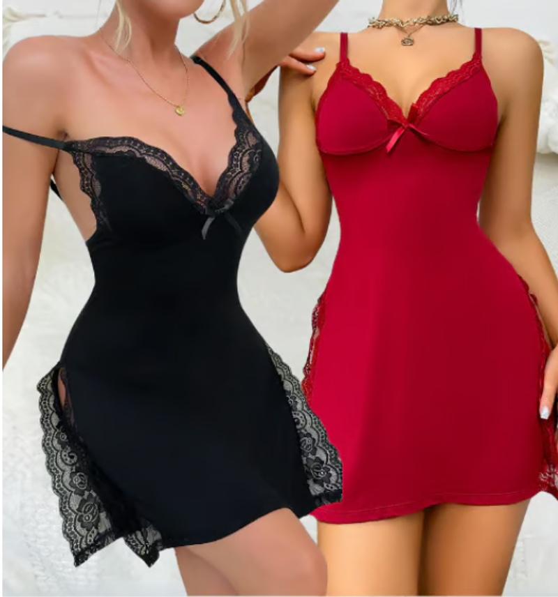 🔥Buy 1 get 3 free🔥💕Lace Trim Slit Bowknot Decor Sleep Dress